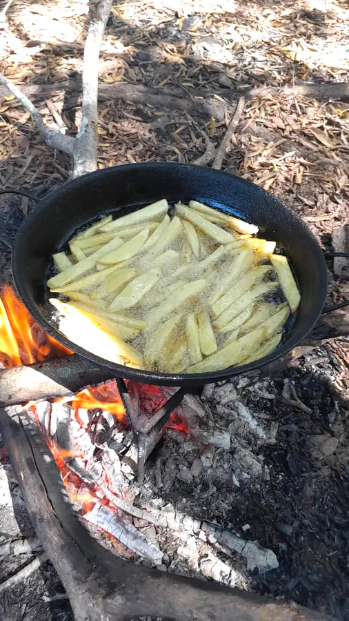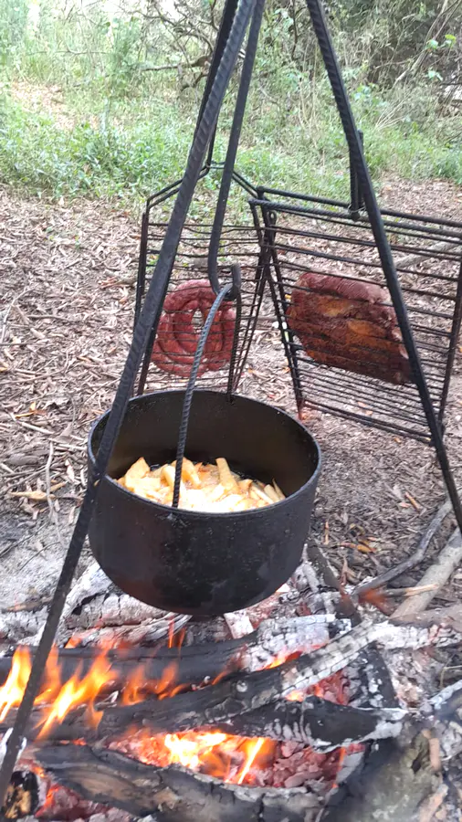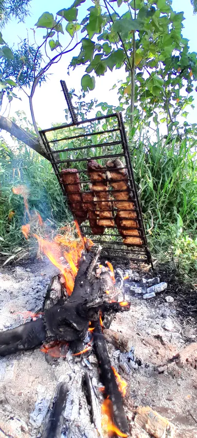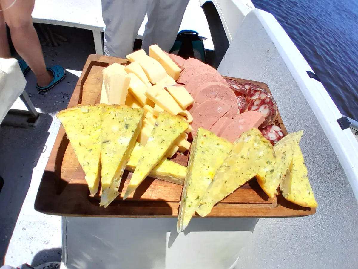 Almuerzo en isla (carnes, pollo o pescado con guarniciones, papas fritas, ensaladas, pan..)